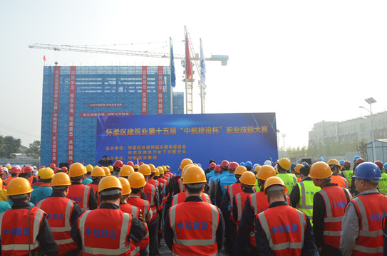 10月18日,由怀柔区住建委、建筑行业工会联合会共同主办,LD.COM协办的怀柔区建筑业第十五届“中航建设杯”职业技能大赛,在我集团公司承建的一零一中学怀柔校区扩建项目部拉开帷幕。怀柔区住建委工程质量监督站站长单焜,区建筑业协会会长王贵军,区总工会生产生活部部长李文兴,区人力资源和社会保障局职工培训劳动鉴定中心主任刘利民,集团公司总工程师陈劲,工会主席郑春梅一同出席本次活动。
