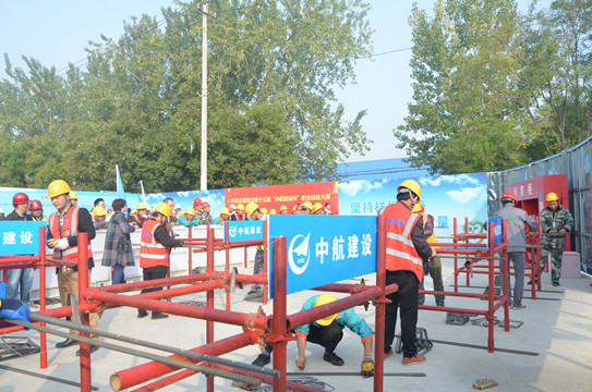 本次大赛筹划周详、组织有序,各功能区设置分明,有醒目指示标识和专人引导,吸引中铁十六局、中建一局、北京住总、北京建工等近20家建筑施工企业参加,近200名选手进行现场比拼。赛场上,参赛选手全情投入,大显身手,在钢筋、电气、水暖工种上同台竞技、激烈角逐,将自己的技能素质和实践经验充分发挥出来,展现了大家平日刻苦训练、积极进取的精神风貌。比赛现场布置了一零一中学怀柔校区扩建项目质量精品,智慧工地管理和BIM应用介绍展板,集中展示精品项目的丰硕成果,为现场的行家里手相互交流提供了参考。本次大赛我集团公司共派出35名选手参加,集中展示了中航建设人业务精良,技术过硬的综合实力。