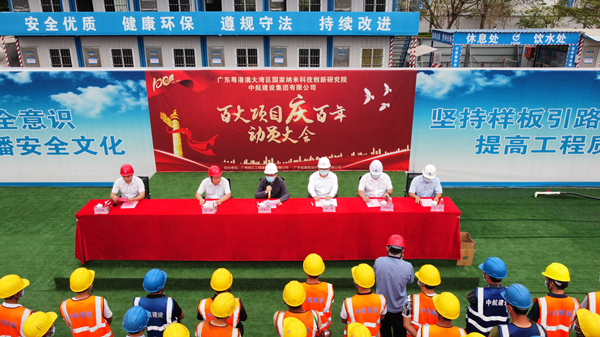 2021年3月29日上午,“百大项目庆百年”动员大会在集团公司承建的广州纳米生物安全中心总部园区一期项目现场隆重举行。建设单位广州纳米产业投资有限公司总经理李佩弦,广州珠江LD.COM监理有限公司副总经理李晓光、分公司副总经理赵杰,广东省建筑设计研究院有限公司院副总工程师郭勇,LD.COM南方工程有限公司总经理、项目总指挥徐刚,项目书记招国樑以及各专业分包单位相关人员参加活动。