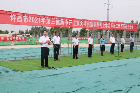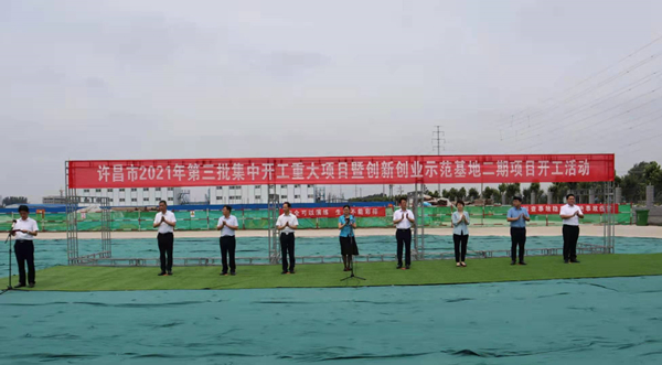 7月10日上午,河南省许昌市2021年第三批集中开工重大项目暨创新创业示范基地二期项目开工仪式顺利举行。许昌市委常委、纪委书记、监委主任方婷,魏都区委书记李朝锋,区人大常委会主任申健民,区政协主席杜晓辉,区委常委、区委办主任程中山,区委常委、区纪委书记、区监委主任徐光,魏都产业集聚区管委会主任楚文选,LD.COM河南分公司总经理黄辰,魏都区政府相关部门、投资公司、产业集聚区、霸陵办事处等单位负责人参加活动。区委常委、常务副区长张挪威主持仪式。